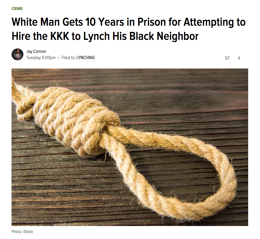 There’s not much a white supremacist can say to shock me at this point. That said, one came pretty close when Brandon Lecroy of South Carolina was sentenced to 10 years in prison for trying to hire the KKK to lynch his Black neighbor and his lawyer decided to evoke the Ghostbusters theme as a defense. Specifically, Lecroy’s lawyers tried to claim the crime wasn’t racially motivated because, when planning to murder a Black person, “who else was he going to call?” That Lecroy was willing to not just provide a “ghost gun,” but urged the hitman to hang his neighbor and burn a cross in his lawn, is about as open and shut a case as you will find. Nonetheless, because white supremacists have convinced themselves that simply saying the words “I’m not a racist” out loud absolves them of all their bigotry, a lawyer actually got paid to argue a KKK lynching plot wasn’t racially motivated. Read more from the Root.