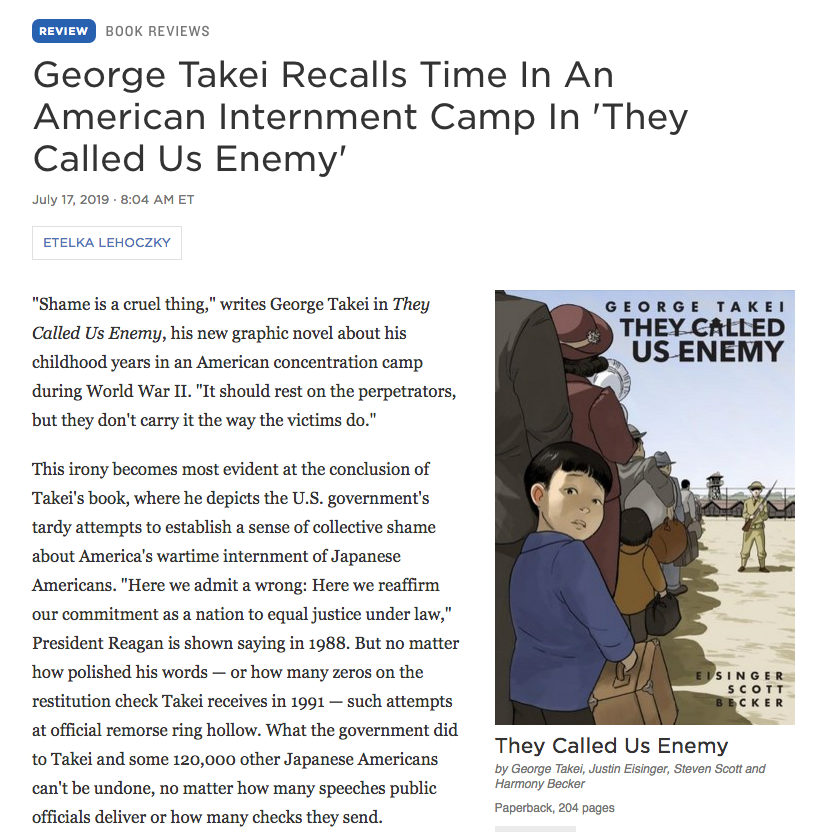 The parallels between the mass detention of migrants during the Trump era and the horrors of the past like Japanese internment camps aren’t lost on many people, especially those who survived those horrors. George Takei, who lived through interment and went on to become a famed actor on Star Trek, is using his platform to hammer this point home with a new children’s book. In “They Called Us Enemy,” Takei not only details the experiences of living in an internment camp and the struggles of trying to adjust to normal life even after being released, but uses the perspective of himself as a child to demonstrate how these things affected his childhood innocence. With the images of children in cages flashing across the news every week in 2019, it’s clear that this decision to write from the perspective of a child is deliberate. It demonstrates what we do as humans to get ourselves through our most trying times and how the softer narratives we try to hold onto eventually give way to the harsh reality, no matter how much we try to prevent it. “They Called Us Enemy” should be a cautionary tale but it might go down as further evidence that the white supremacist terrorism of this era didn’t happen because people didn’t know any better. They just didn’t care. Read more from NPR.